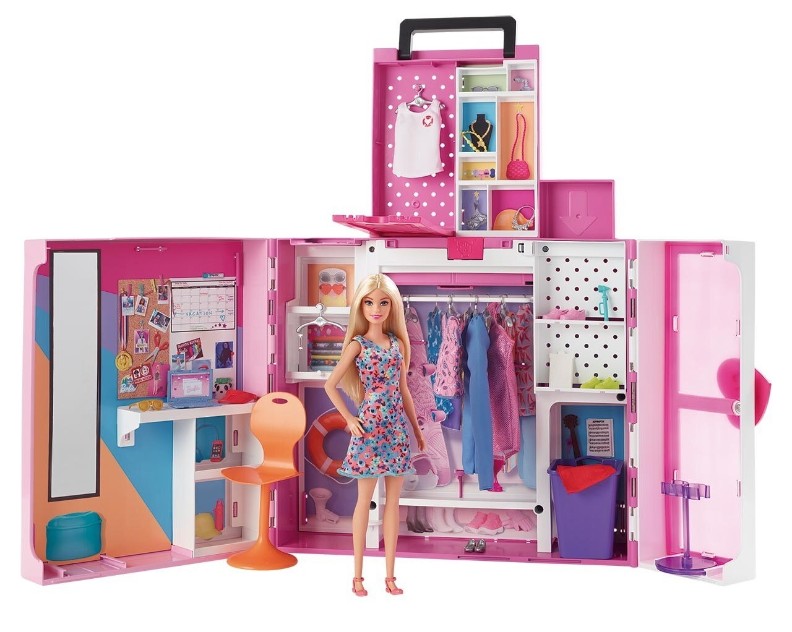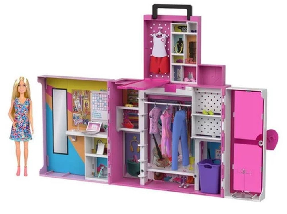 Complectatiedressing, lac, 4 tinute, 3 perechi de pantofi, 10 umerase, cos de rufe, scaun, ochelari de soare, sapca de baseball, 3 coliere, laptop, accesorii tematice