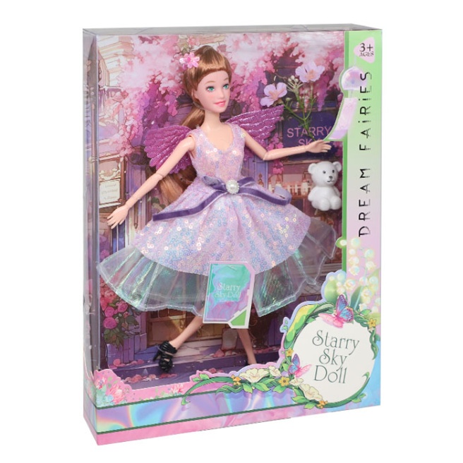 Această păpușă magică și colorată va fi o prietenă adevărată pentru copilul tău! Cu aripi frumoase, flori artificiale și un animal de companie drăguț, ea arată ca o zână adevărată. Setul vine și cu accesorii care vor diversifica jocul de rol și vor dezvolta imaginația. Înaltă de 29 cm, păpușa este perfectă pentru mânuțele mici și aduce multă bucurie.