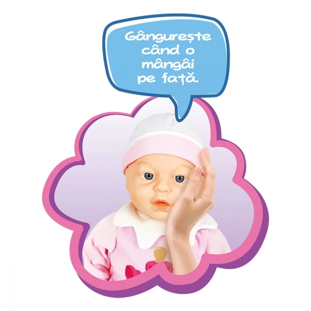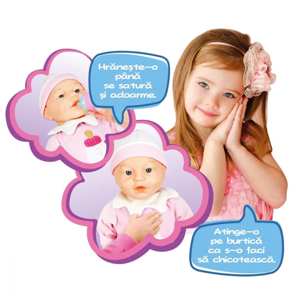 Maia este putin mai mofturoasa astazi. Ai grija de ea si ajut-o sa se simta mai bine! Daca o mangai pe fata si pe burtica, o vei face sa gangureasca si sa chicoteasca. Si cum ai putea s-o ajuti mai bine sa nu mai fie mofturoasa decat cu o masa copioasa cu biberonul, care o va face sa adoarma instant? Maia isi schimba si expresia fetei, in functie de cum o faci sa se simta.