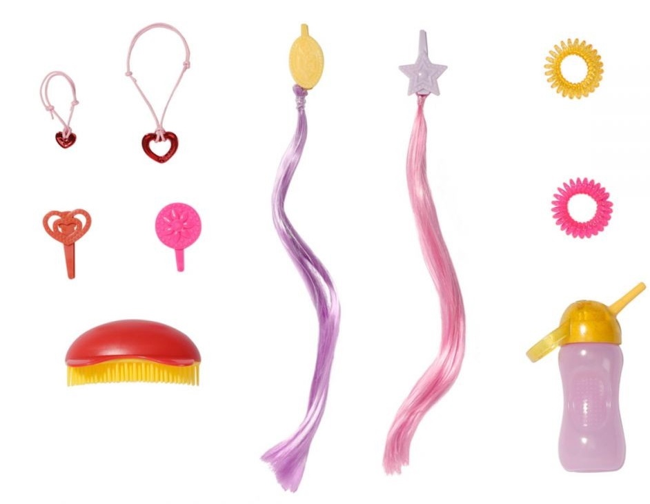 Complectatiesticlă, pieptene, brățări, 2 șuvițe multicolore, 2 legături de păr