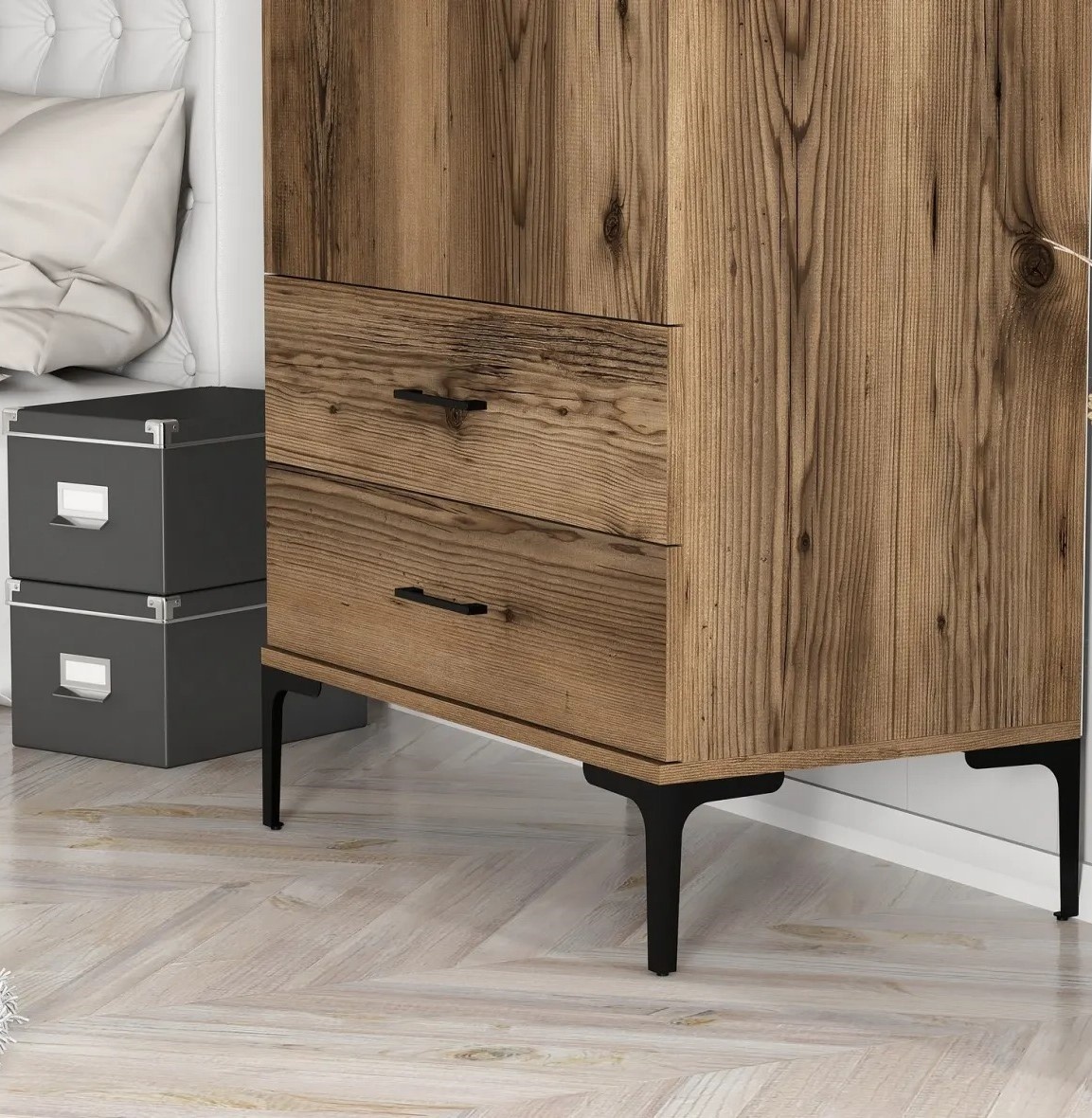Asamblarea este simplă și rapidă. Acoperirea din melamină facilitează întreținerea, păstrând dulapul în stare impecabilă cu efort minim.
