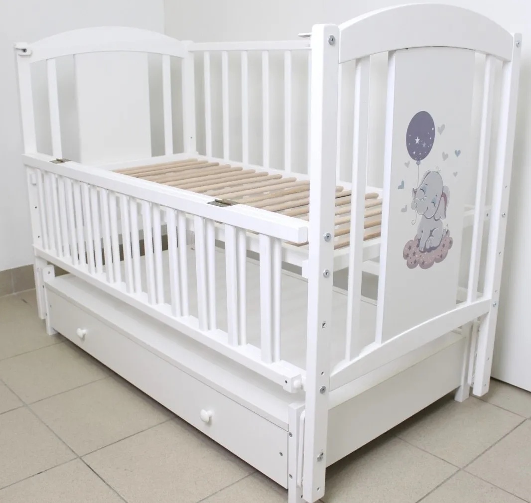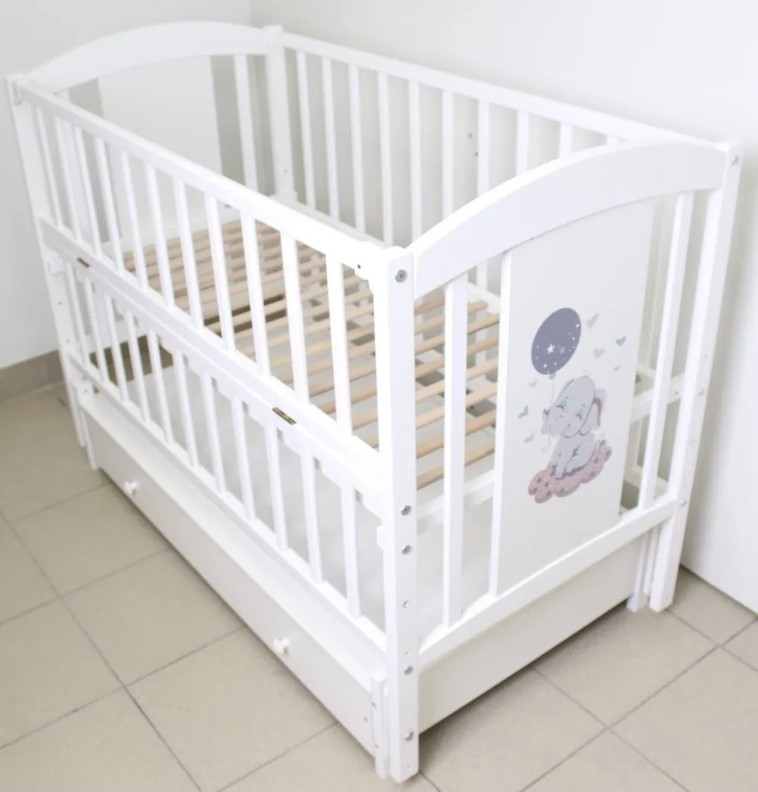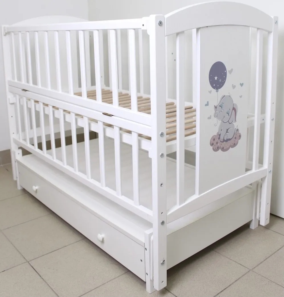 Pătuţ Кузя Слоник Белый на маятнике с ящиком