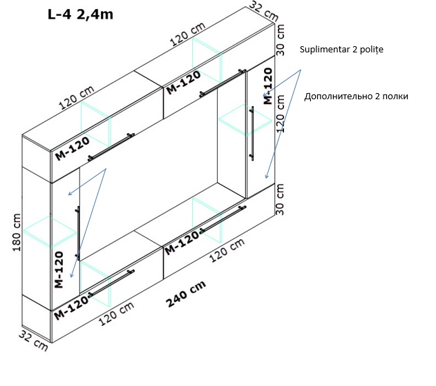 - Raft MX-120 deschidere inferioară (2 buc.): 120x32x30 cm