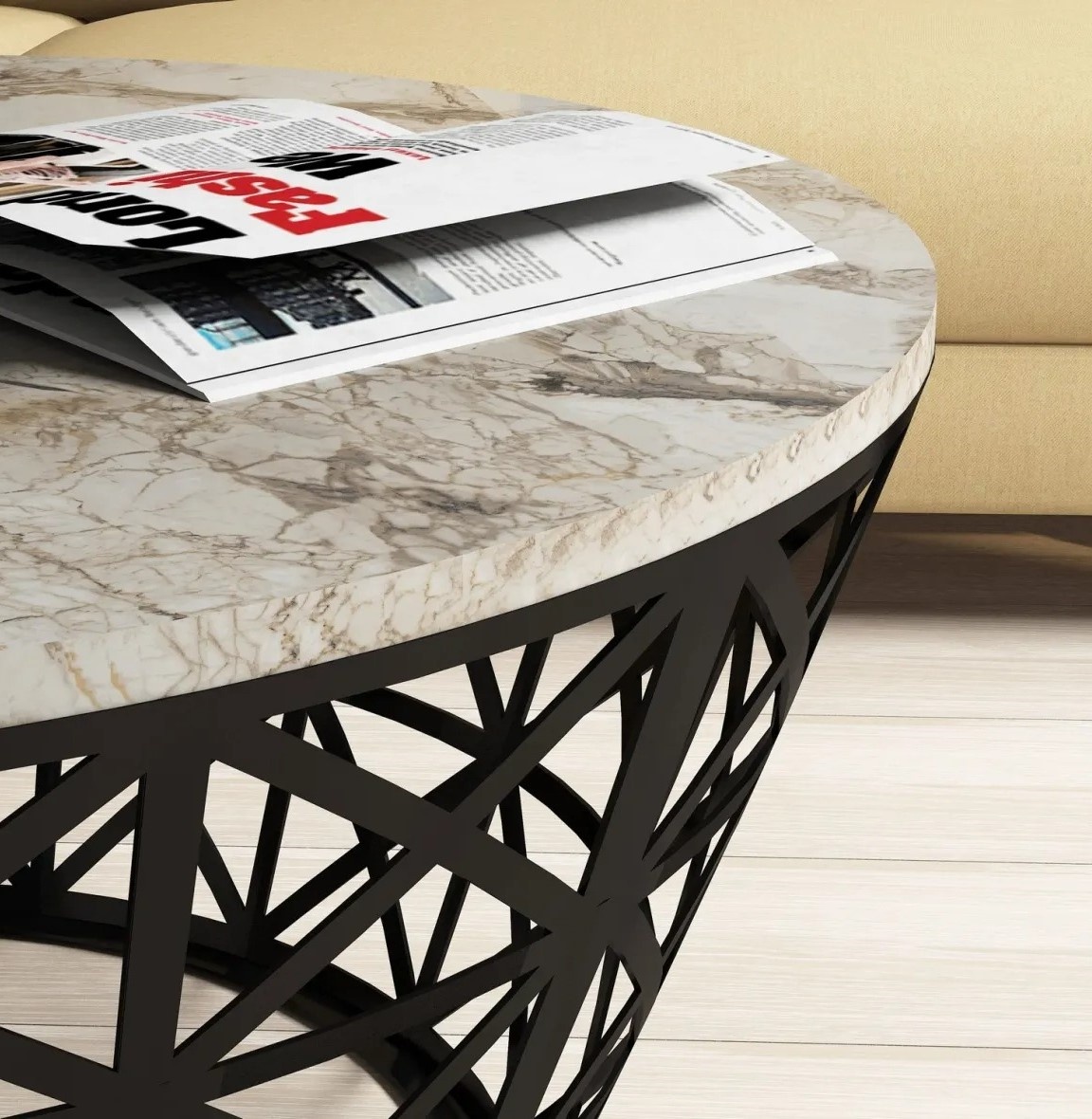 Măsuţă cafea Trendy Stil White Marble/Black 90x38x90cm GTR000680