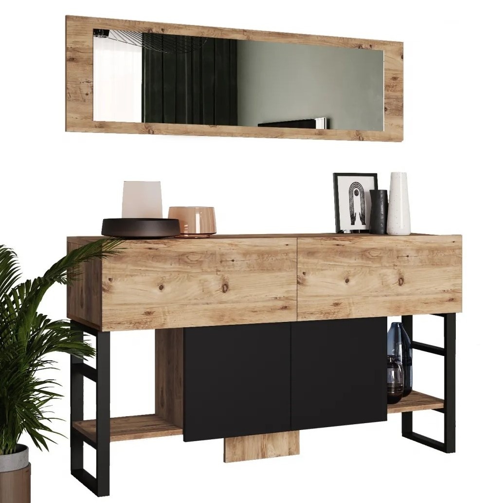 Cu designul său modern și inedit, consola noastră este un accesoriu perfect pentru orice casă cu tematică contemporană sau industrială. Rama sa metalică elegantă adaugă o notă de rafinament, în timp ce culoarea pinului atlantic aduce căldură și farmec zonei dvs. de locuit.