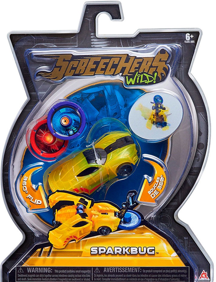 Screechers Wild! - este prima masina din istorie care face o rasturnare de 360 de grade si se transforma intr-o fiara salbatica chiar in aer liber. Iti poti imagina un astfel de lucru? Organizeaza aventuri incredibile, batalii spectaculoase si curse fantastice impreuna cu transformerul Screechers. Fiecare masina se transforma intr-un animal cu super-putere, trebuie doar sa pornesti masina, directionind-o spre un disc magnetic. Iar atunci cind il atingi, va face o saritura in aer si se va transforma intr-o creatura. Colectioneaza-le pe toate si joaca-te cu prietenii!
