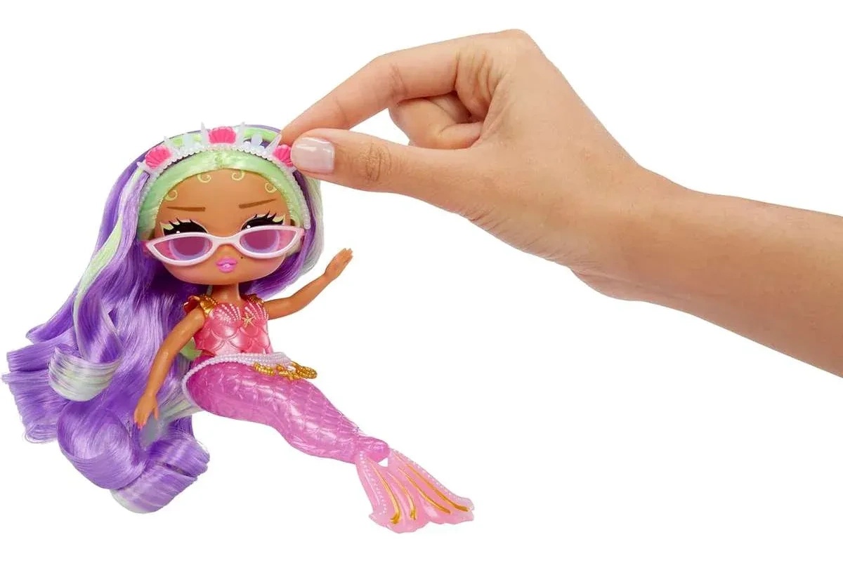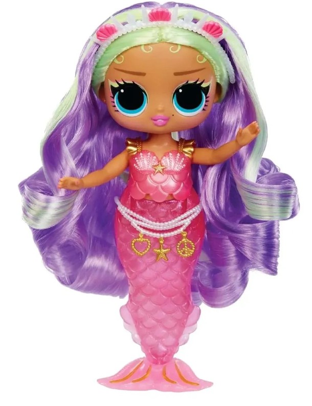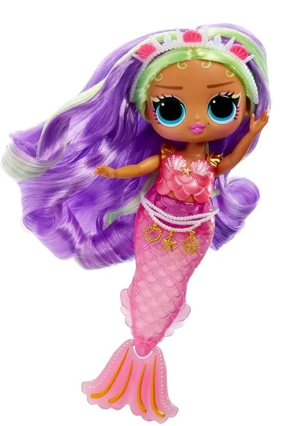 Păpușa L.O.L. Surprise Tweens MERMAID-Cleo Cove este o sirenă fermecătoare, mereu pregătită pentru aventuri subacvatice. Coada ei este cu adevărat magică: își poate mișca înotătoarea înainte și înapoi și își poate schimba culoarea în apă! Cleo Cove este, de asemenea, o frumusețe: are părul lung liliac cu șuvițe verde deschis, o tiară decorată cu perle și scoici și o curea de perle în mai multe rânduri.