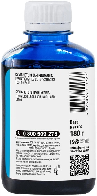 Recipientul cu cerneală Barva Epson L800 Cyan 180 ml (L800-411) este destinat imprimantelor și MFP-urilor Epson cu sistem CISS, inclusiv modelele L800, L805, L810, L850 și L1800. Cerneala cyan oferă culori vii, intense și uniforme, fiind ideală pentru imprimarea fotografiilor, imaginilor și documentelor color de înaltă calitate. Formula stabilă permite umplerea ușoară a rezervoarelor, previne înfundarea capului de imprimare și asigură o funcționare fiabilă pe termen lung a echipamentului. Volumul de 180 ml face acest recipient o soluție economică și practică pentru uz casnic și profesional, garantând printuri clare și rezistente în timp.