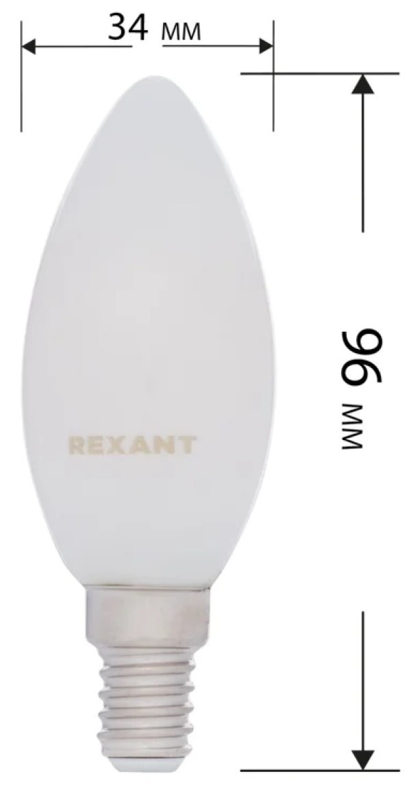 Becul filament mat REXANT CN35 în formă de lumânare, cu o putere de 9,5 W, soclu E14 și lumină albă caldă (2700 K), este ideal pentru iluminatul decorativ al camerelor, locuințelor, hotelurilor, cafenelelor și altor spații interioare.