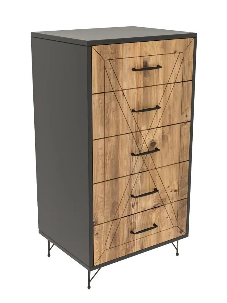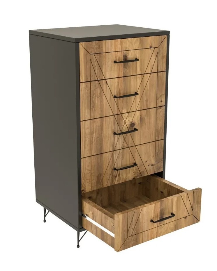 Cu cinci sertare spațioase, această comodă oferă un spațiu amplu de depozitare pentru toate bunurile dvs. Glisierele telescopice asigură o deschidere și închidere lină și fără efort, în timp ce înălțimea piciorului de 15 cm adaugă o notă modernă. Comoda poate fi, de asemenea, fixată pe perete pentru un plus de siguranță și stabilitate.