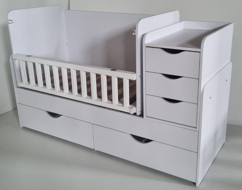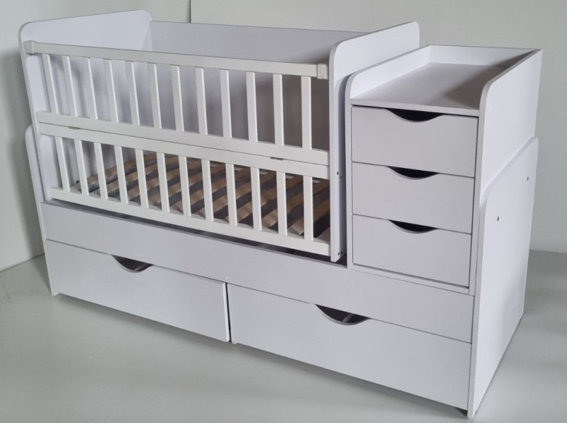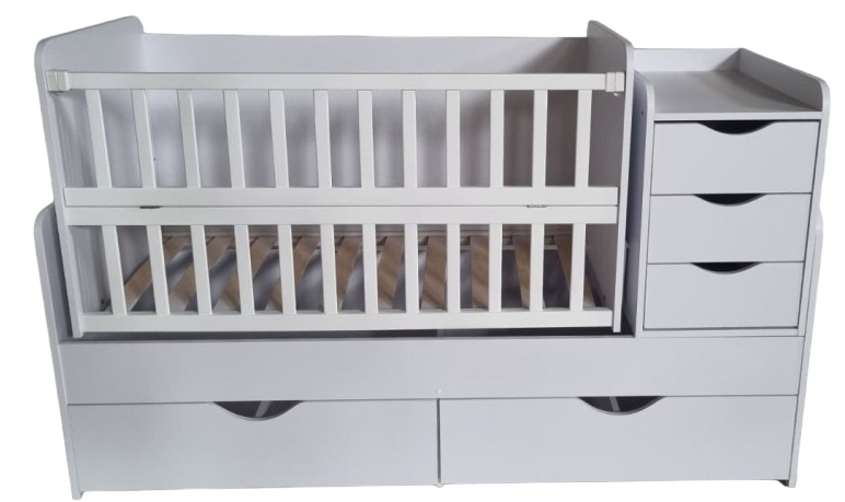 Pătuțul are sertare în care poți depozita toate lucrurile și accesoriile necesare pentru bebeluș.