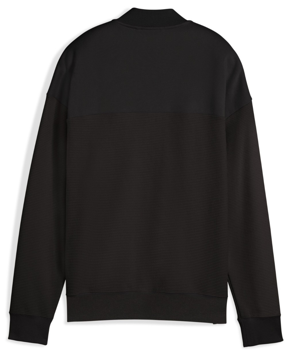 Modelul este realizat din fleece moale și dens, cu tehnologia warmCELL, care reține eficient căldura, oferind protecție împotriva frigului, fără a adăuga volum inutil. Suprafața texturată a materialului exterior aduce un plus de personalitate, oferă profunzime vizuală și un aspect sofisticat, oferind o notă premium hanoracului. Conținutul ridicat de bumbac asigură o senzație plăcută la purtare, iar utilizarea a cel puțin 30% materiale reciclate reflectă angajamentul PUMA față de mediu, fără a compromite calitatea sau durabilitatea.