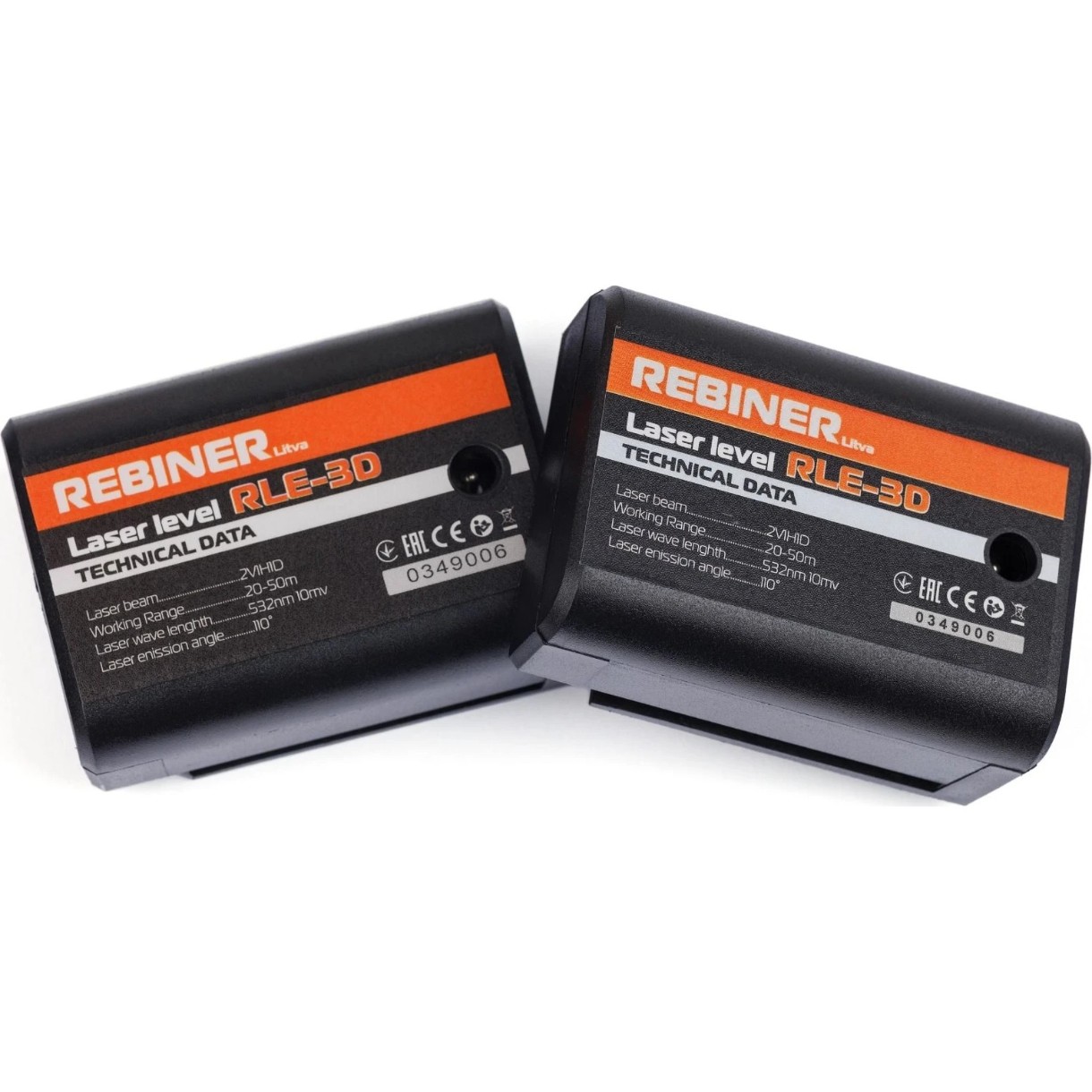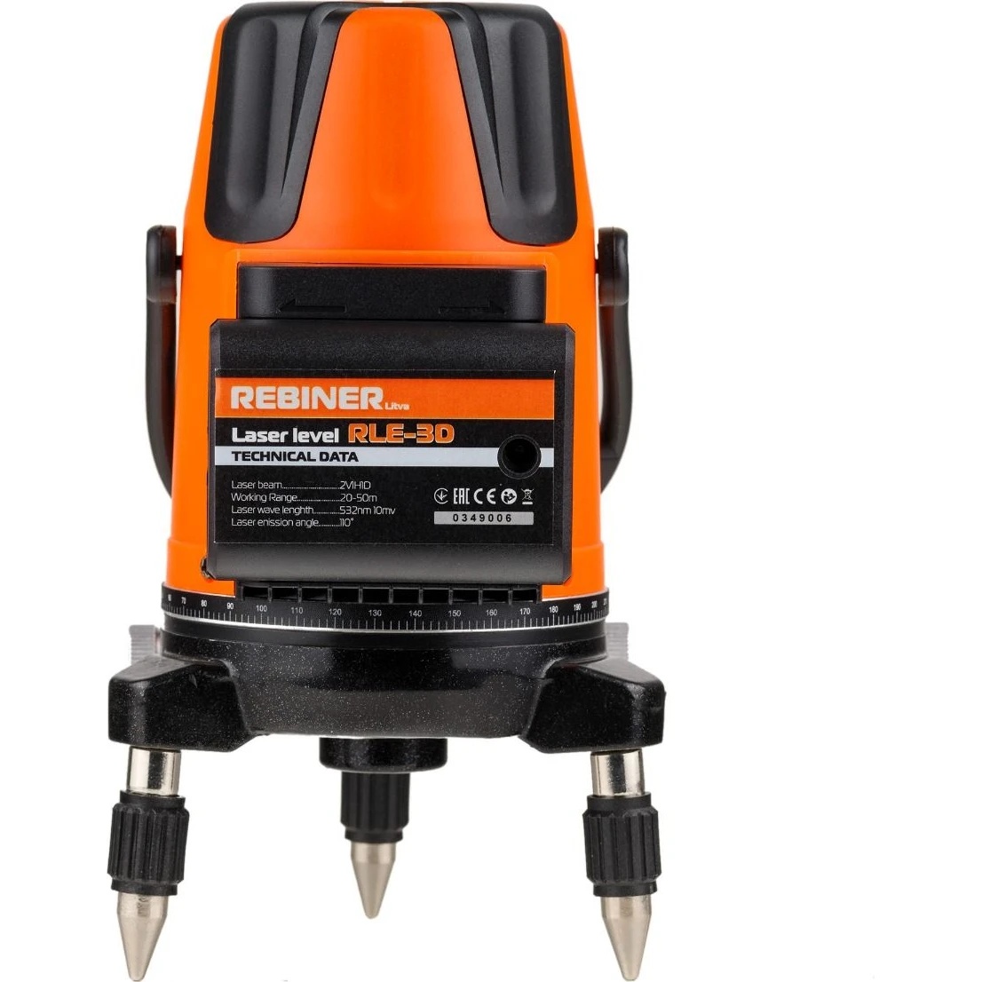 Rebiner RLE-3D este destinat construirii planurilor orizontale și verticale, fiind utilizat la nivelarea suprafețelor, instalarea ușilor și feronerie, marcarea construcțiilor, construirea pereților și alte lucrări. Aparatul este echipat cu funcția de auto-nivelare. La atingerea unui unghi de înclinare care depășește intervalul de nivelare, fasciculul începe să clipească și se aude un semnal caracteristic. Setarea preliminară a preciziei de instalare se realizează cu ajutorul unui nivel cu bule. Baza rotativă cu diviziuni permite orientarea verticală a fasciculului în direcția dorită. Este livrat într-un caz convenabil din plastic.