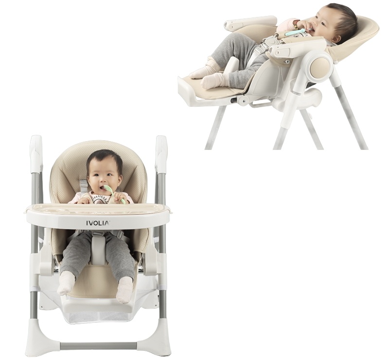 Scaunul înalt IVOLIA este un transformator care se poate transforma pe măsură ce copilul tău crește: până la 6 luni - este un șezlong; de la 6 luni - un scaun înalt pentru hrănire, joacă și odihnă; de la 12 luni - un scaun înalt fără tavă, care poate fi așezat la masă pentru a lua masa cu toată familia.