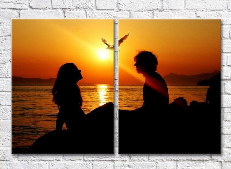 Pictură ArtPoster Couple in love on a sunset background (3453724)
