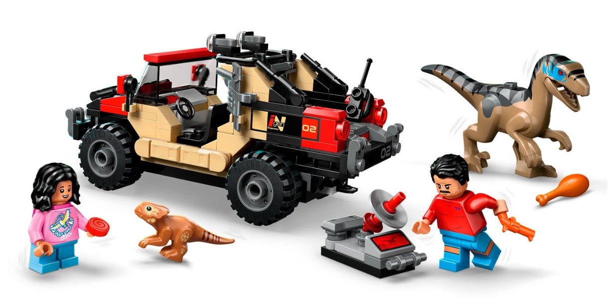 Aventuri palpitante îi așteaptă pe copii și fanii filmelor cu vârsta de 6 ani și peste cu acest set LEGO® Jurassic World Raptor Off-Road Escape (76972) - un cadou cu dinozauri pentru băieți și fete, inspirat de filmul Jurassic World Reborn. După ce construiesc acest set de joacă cu dinozauri, copiii pot juca roluri în scene din filmele lor preferate sau pot crea povești noi cu minifigurinele Ruben și Isabella Delgado, o figurină dinozaur Dolores și o figurină Velociraptor cu maxilară articulată. Setul de construcție include un vehicul de teren de jucărie și un dispozitiv de urmărire, un tufiș cu efect de „surpriză” care poate fi folosit cu Velociraptor în timpul jocului și multe altele.