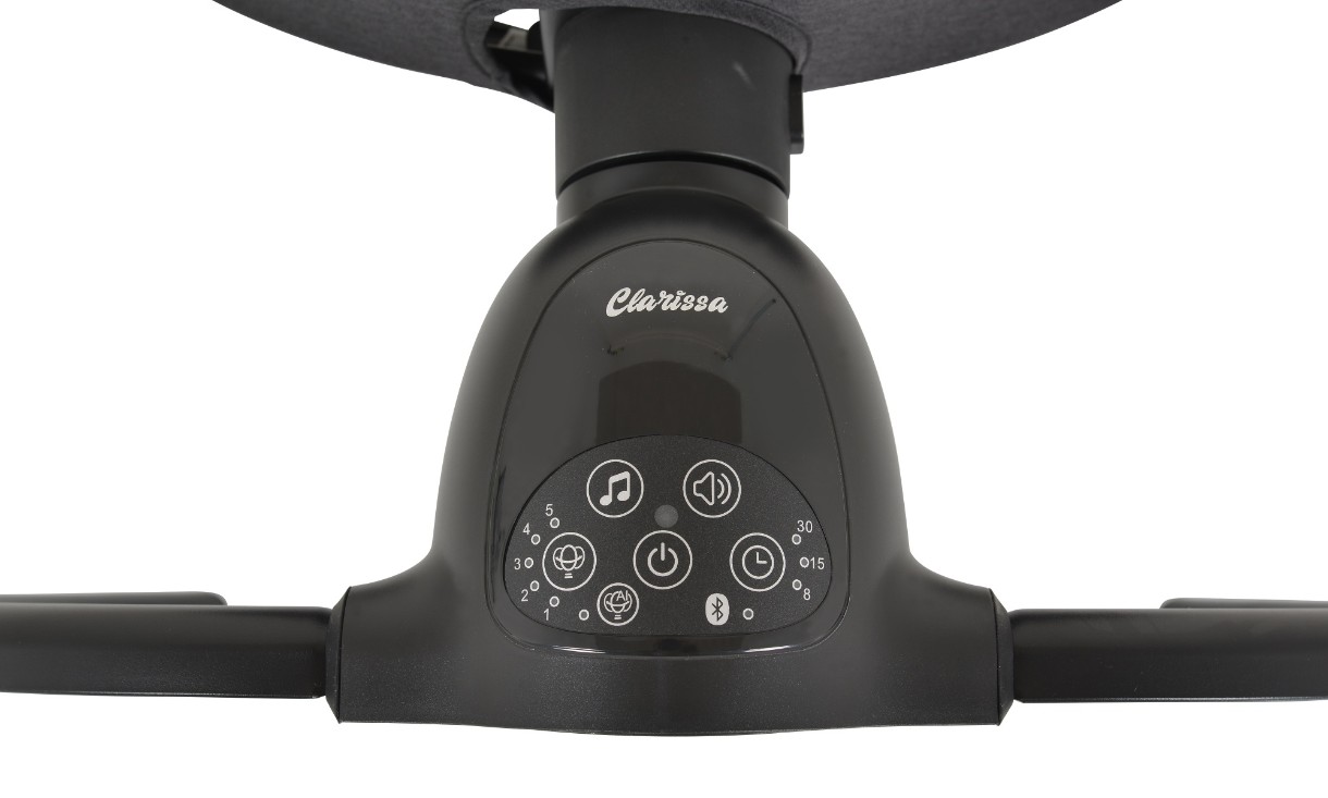Leaganul electric Clarissa are un design elegant si curat, potrivit pentru orice interior. Există 5 viteze de leagăn din care puteți alege. Leagănul are un detector de mișcare încorporat care poate activa automat leagănul atunci când copilul se mișcă. Folosind funcția Bluetooth, puteți reda muzica la alegere în cazul în care nu doriți să profitați de cele 10 tonuri de apel disponibile. Leaganul functioneaza doar cu un adaptor cu lungimea cablului de 5m (inclus in set). Poate fi controlat cu panoul tactil al mecanismului sau cu o telecomandă. Opțional, puteți utiliza cronometrul cu o opțiune de 8, 15 și 30 de minute. Selectând oricare dintre aceste opțiuni, leagănul se oprește după intervalul de timp specificat. Centura de siguranta in 5 puncte va asigura siguranta copilului. Produsul are un baldachin plasa de insecte si 2 jucarii de plus. Pentru confortul bebelusului, setul include si o perna moale. Tapițeria poate fi îndepărtată cu ușurință pentru spălare. Leagănul poate fi dezasamblat rapid și ușor de un adult cu o singură mișcare. În plus, construcția sa extrem de ușoară îl face convenabil de transportat în altă cameră sau pe drum.