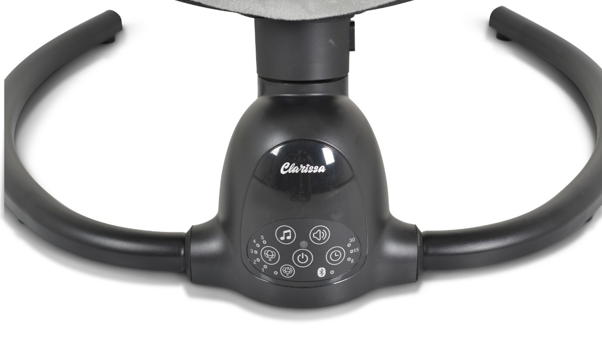 Leaganul electric Clarissa are un design elegant si curat, potrivit pentru orice interior. Există 5 viteze de leagăn din care puteți alege. Leagănul are un detector de mișcare încorporat care poate activa automat leagănul atunci când copilul se mișcă. Folosind funcția Bluetooth, puteți reda muzica la alegere în cazul în care nu doriți să profitați de cele 10 tonuri de apel disponibile. Leaganul functioneaza doar cu un adaptor cu lungimea cablului de 5m (inclus in set). Poate fi controlat cu panoul tactil al mecanismului sau cu o telecomandă. Opțional, puteți utiliza cronometrul cu o opțiune de 8, 15 și 30 de minute. Selectând oricare dintre aceste opțiuni, leagănul se oprește după intervalul de timp specificat. Centura de siguranta in 5 puncte va asigura siguranta copilului. Produsul are un baldachin plasa de insecte si 2 jucarii de plus. Pentru confortul bebelusului, setul include si o perna moale. Tapițeria poate fi îndepărtată cu ușurință pentru spălare. Leagănul poate fi dezasamblat rapid și ușor de un adult cu o singură mișcare. În plus, construcția sa extrem de ușoară îl face convenabil de transportat în altă cameră sau pe drum.