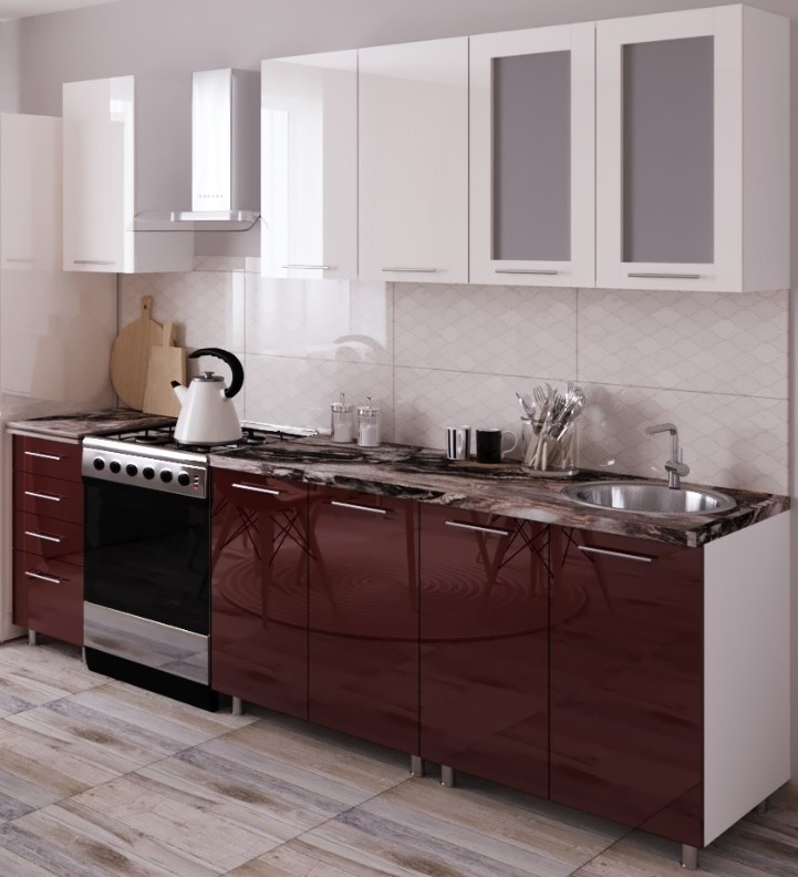 Bucătărie Bafimob Lena (High Gloss) 1.6m White/Bordo