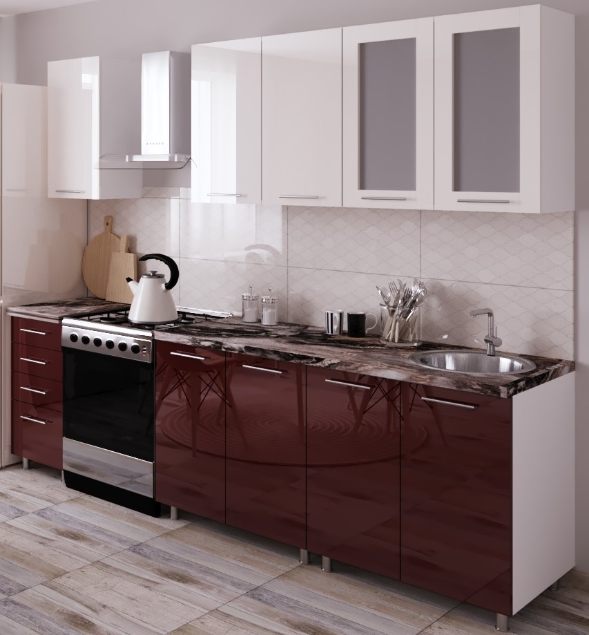 Bucătărie Bafimob Lena (High Gloss) 1.8m White/Bordo