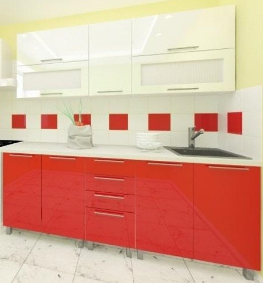 Bucătărie Bafimob Lena (High Gloss) 2.0m Top Red/Beige