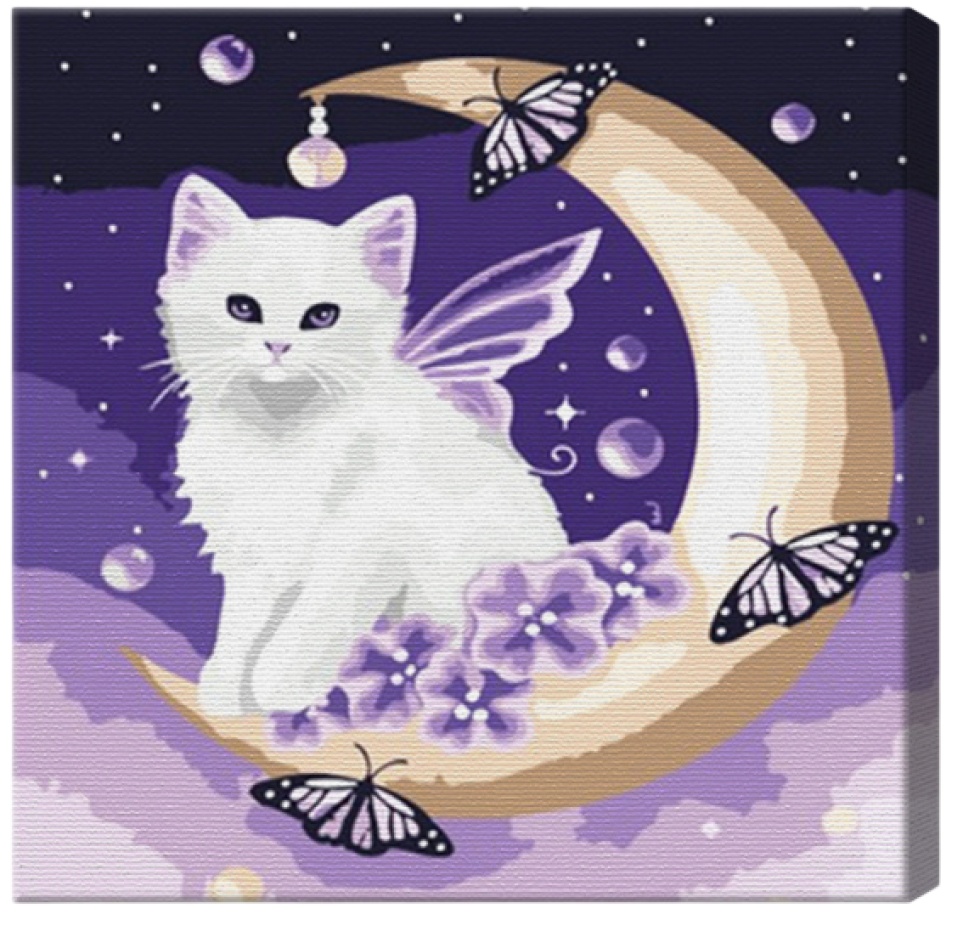 Tablou pe numere Art Gallery Premium White Cat On The Moon (BX3343)
