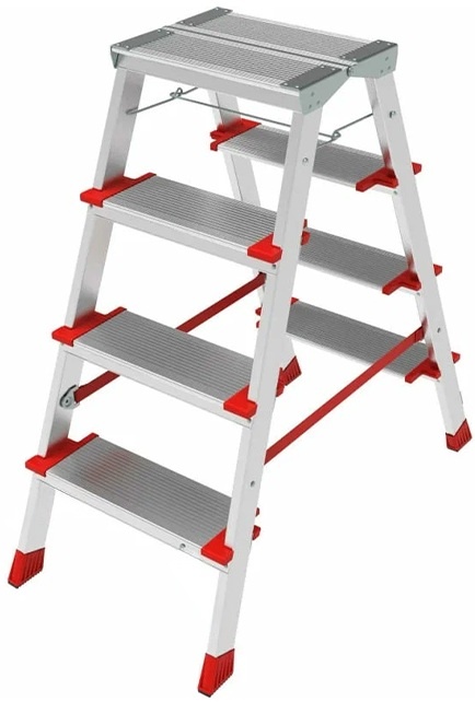 Scara dublă din aluminiu BauWelt 44893 oferă acces convenabil și sigur la suprafețele de lucru de pe ambele părți. Construcția ușoară și robustă din aluminiu asigură durabilitate și stabilitate, iar treptele late antiderapante cresc siguranța la urcare. Designul pliabil permite depozitarea ușoară și economisirea spațiului, făcând această scară un instrument versatil pentru casă, atelier sau depozit.