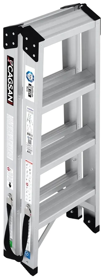 Scara dublă CAGSAN EVR-PRO (2x4 trepte) este o scară din aluminiu fiabilă și practică, potrivită atât pentru uz profesional, cât și casnic. Datorită designului cu două fețe, permite lucrul din ambele părți, sporind eficiența și confortul. Structura solidă din aluminiu anodizat oferă durabilitate și stabilitate, iar treptele antiderapante asigură siguranță maximă în utilizare. Scara se pliază ușor și ocupă puțin spațiu la depozitare sau transport. Modelul CAGSAN EVR-PRO 2x4 este alegerea ideală pentru lucrări de montaj, finisaje și reparații, oferind confort și sprijin sigur la înălțime.