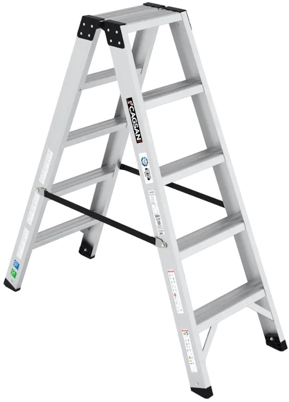 Scara dublă CAGSAN EVR-PRO (2x5 trepte) este o scară din aluminiu fiabilă și practică, potrivită atât pentru uz profesional, cât și casnic. Datorită designului cu două fețe, permite lucrul din ambele părți, sporind eficiența și confortul. Structura solidă din aluminiu anodizat oferă durabilitate și stabilitate, iar treptele antiderapante asigură siguranță maximă în utilizare. Scara se pliază ușor și ocupă puțin spațiu la depozitare sau transport. Modelul CAGSAN EVR-PRO 2x5 este alegerea ideală pentru lucrări de montaj, finisaje și reparații, oferind confort și sprijin sigur la înălțime.