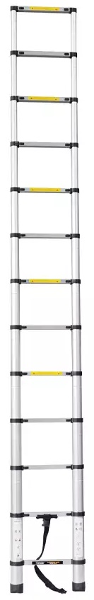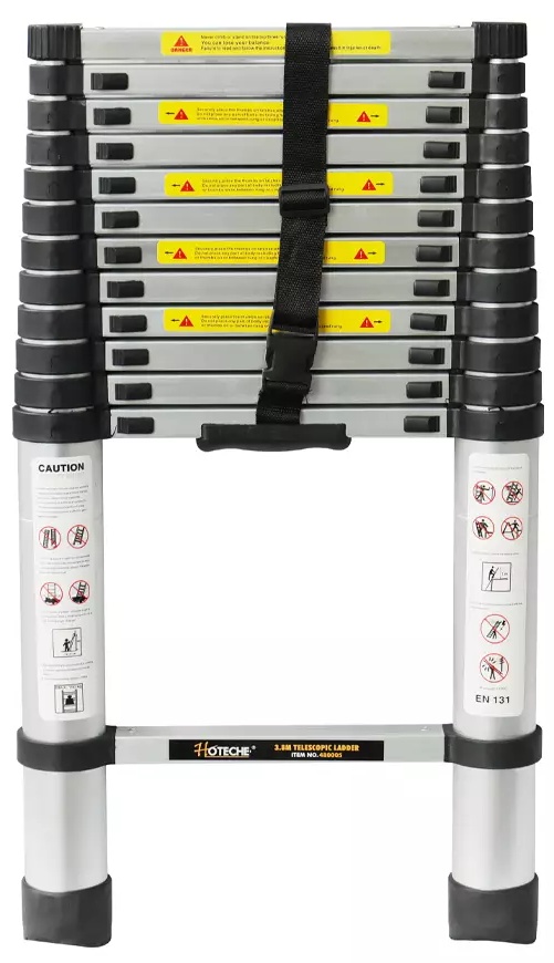 Scara telescopică HOTECHE 480005, cu lungimea de 3,8 m, este o soluție versatilă și compactă pentru lucrul la înălțime, combinând confortul utilizării cu fiabilitatea. Secțiunile scării se extind și se blochează treaptă cu treaptă, asigurând utilizarea în siguranță și ușurința depozitării. Treptele rezistente și picioarele stabile suportă o sarcină de până la 150 kg, iar mecanismul telescopic permite reducerea lungimii scării la un format compact pentru depozitare acasă, în garaj sau transport în automobil.