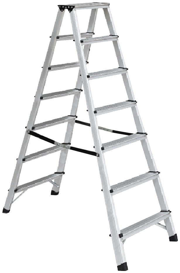 Scara dublă din aluminiu AD0407A cu 2x7 trepte este o scară pliabilă robustă și sigură, destinată uzului casnic. Distanța între trepte este de 22 cm, oferind confort și ușurință la urcare. Treptele și structura sunt realizate din aluminiu antiderapant, asigurând stabilitate și siguranță în utilizare. Scara este ambalată într-o cutie, facilitând depozitarea și transportul.