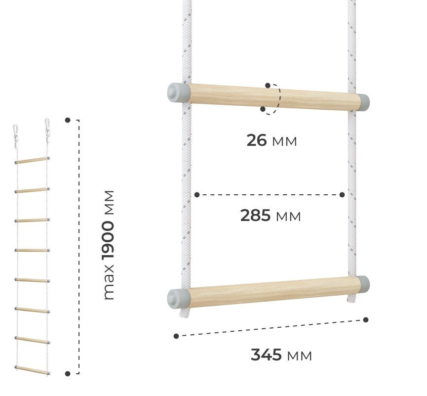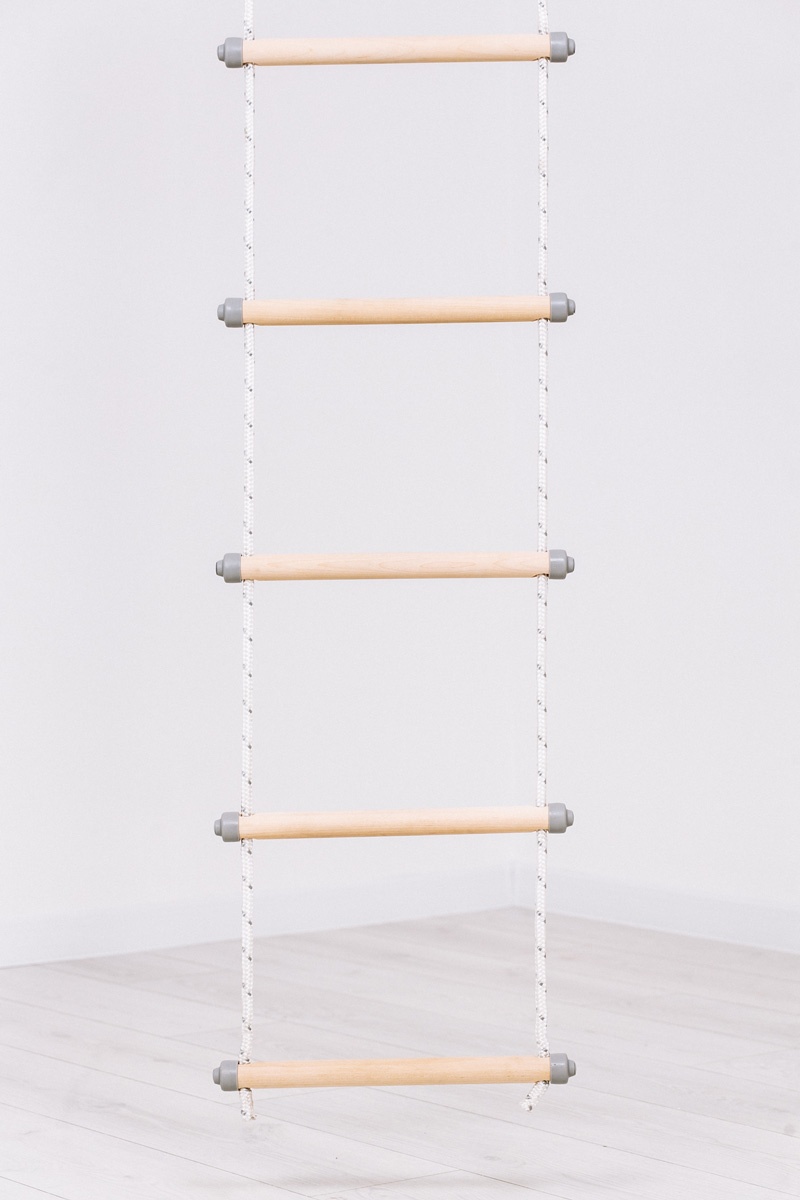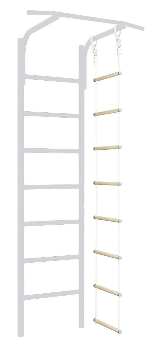 O scară de frânghie este o modalitate excelentă de a adăuga varietate activităților și jocurilor din complexul sportiv. Poate fi atârnat pe o bară transversală; scara de frânghie stimulează bine dezvoltarea dexterității, echilibrului și a sistemului vestibular. Când este scos din DSC, se pliază frumos și nu ocupă mult spațiu.