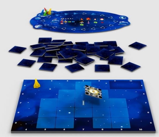 In set2 tablete de zbor cu două fețe, 156 componente de nave spațiale, 68 de plăci de credit spațial, 60 de cărți de aventură, 55 de blocuri de mărfuri, 42 de figuri de astronauți, 40 de jetoane de baterie, 8 marcatoare de rachete în 4 culori, 6 piese de titlu