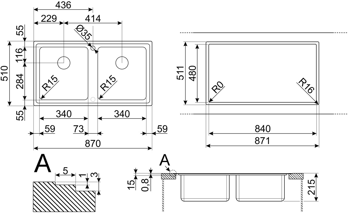 Dimensiuni cuvă auxiliară342х402 mm