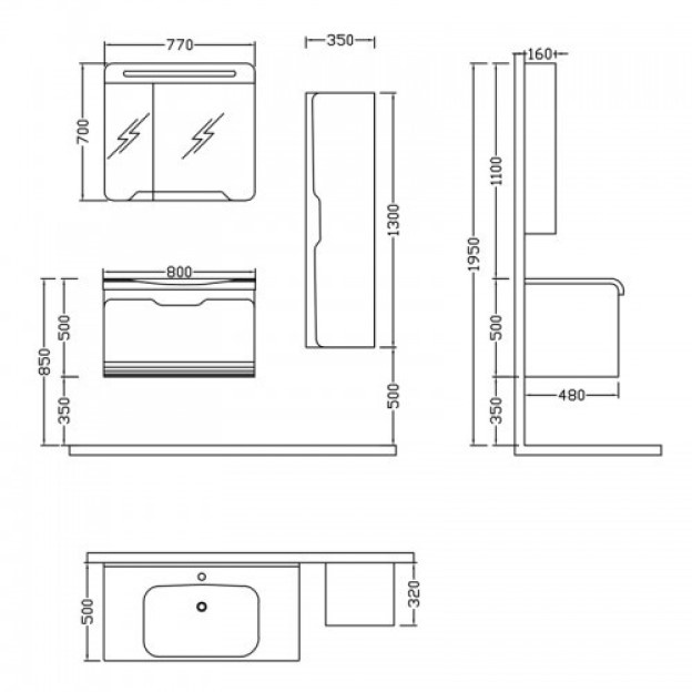 Dimensiuni dulap lavoar (LxÎxA)800x500x500 mm
