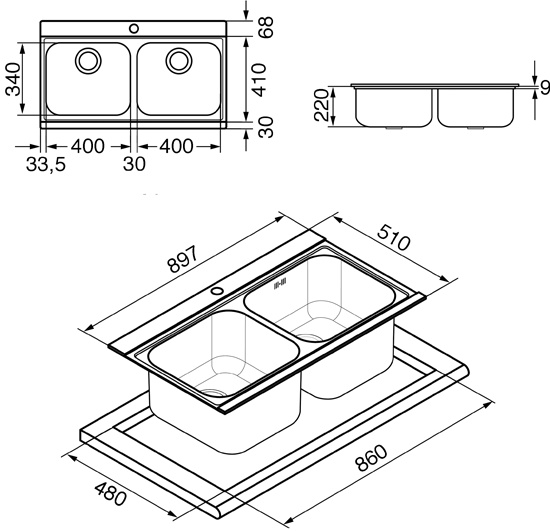 Inclus în setsupapă de coș 3 "1/2, bandă de etanșare, cleme de fixare, 2 plăci de tocat