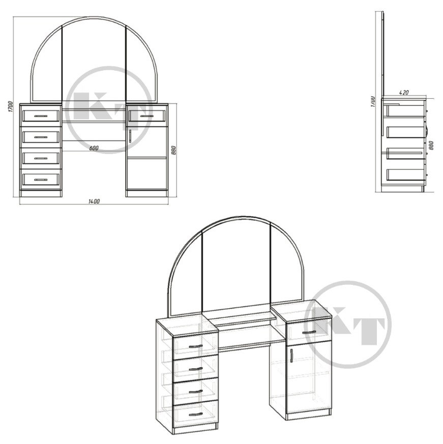 Măsuţă de toaletă Компанит Трюмо-5 (Комплект) Stejar Sonoma