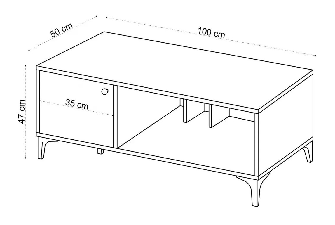Cu o lățime de 100 cm, o înălțime de 47 cm și o adâncime de 50 cm, această măsuță de cafea oferă o suprafață amplă pentru a vă expune piesele de decor preferate sau pentru a vă bucura pur și simplu de o seară confortabilă alături de cei dragi. Picioarele din plastic nu numai că oferă stabilitate, dar previn și zgârieturile pe podele, asigurând o experiență fără probleme.