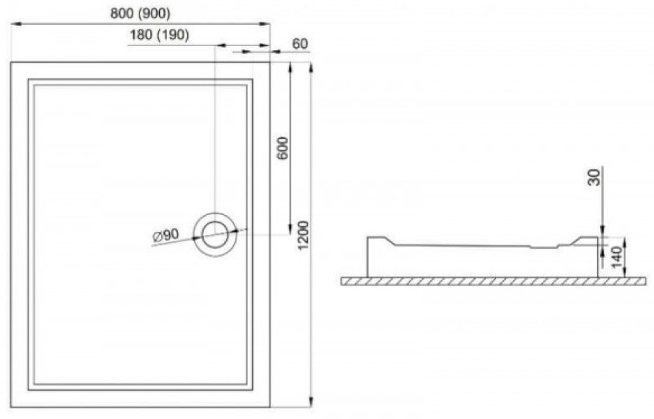 Specificații Cadița de duș Polimat Goliat White Square 120x90x14 (18591)