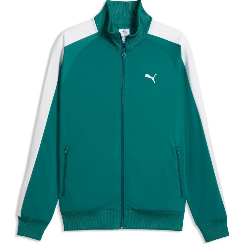 Dungile T7 contrastante pe mâneci și umeri subliniază moștenirea sportivă a liniei, iar logo-ul PUMA Cat brodat pe piept completează imaginea de marcă. Modelul este confecționat din poliester reciclat.
