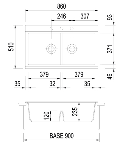 Adâncime cuvă auxiliară235 mm