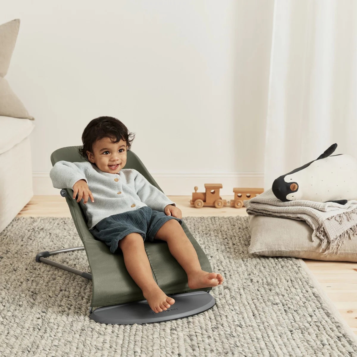 Șezlong pentru bebeluși BabyBjorn Bliss Dark Green Woven Petal Quilt (006140A)