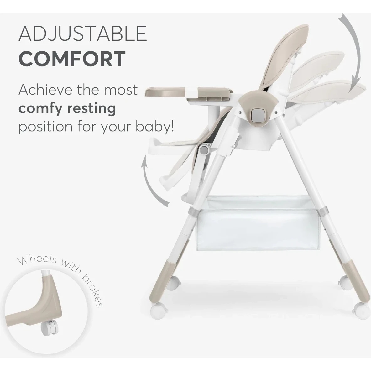 Coș de depozitare integrat unde poti pastra la îndemână biberoane, jucării sau șervețele;