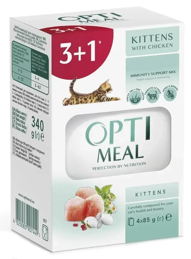Hrană umedă pentru pisici Optimeal Kittens Chicken 4x85g