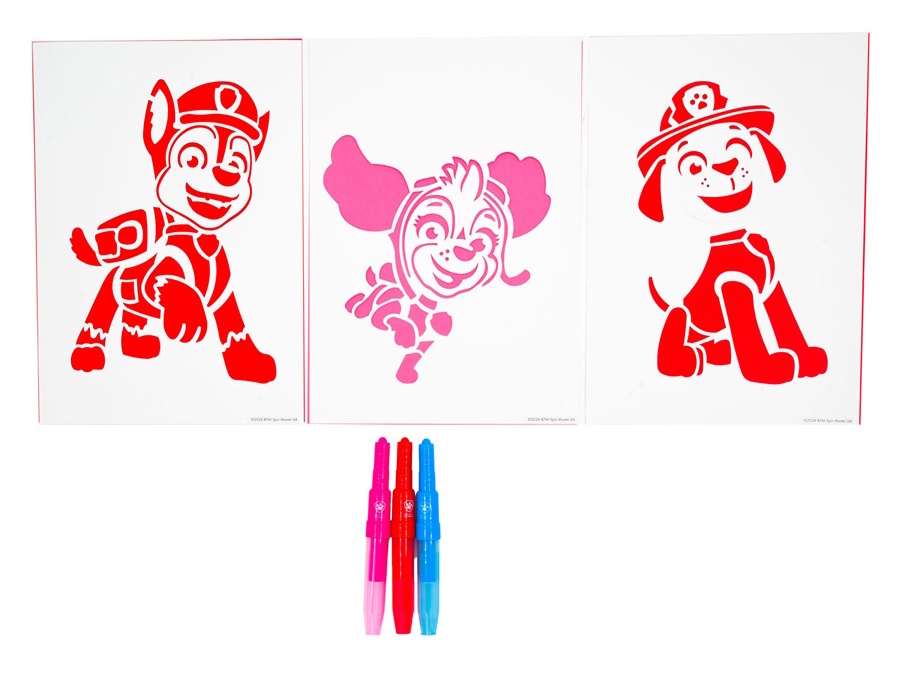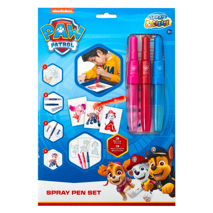 Set PAW Patrol cu 3 șabloane și 3 markere. Potrivit pentru copii de la 3 ani.