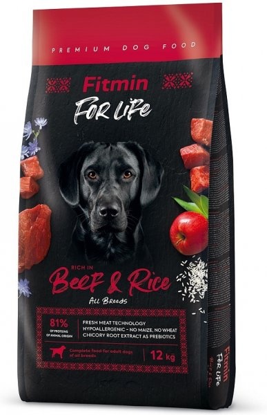 Hrană uscată pentru câini Fitmin For Life Beef & Rice 12kg