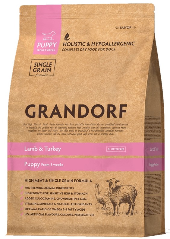 Hrană uscată pentru câini Grandorf Puppy Lamb & Turkey 3kg