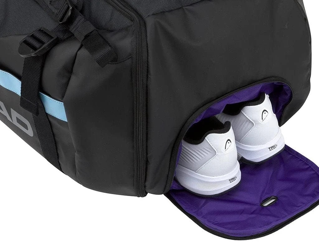 Materialul rezistent protejează conținutul împotriva umezelii și deteriorării, iar designul modern în stil HEAD face geanta un accesoriu atractiv pentru antrenamente și competiții. Head Gravity r‑PET Duffle Bag este alegerea perfectă pentru jucătorii care apreciază practicitatea, confortul și durabilitatea în utilizarea zilnică.