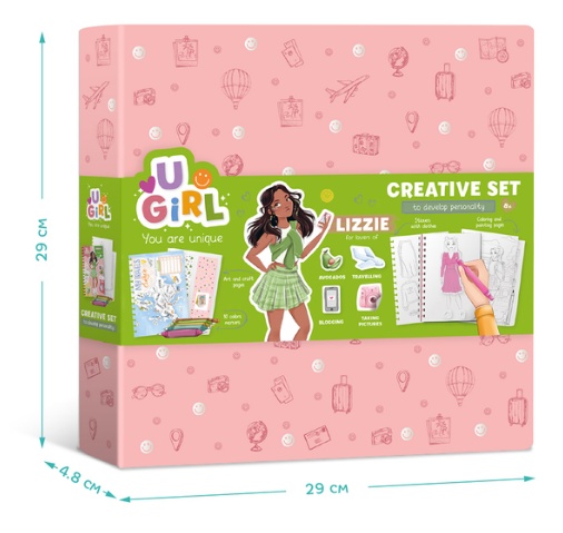 Pătrunde în lumea creativității cu setul unic UGIRL. Tot ce ai nevoie pentru inspirație într-o singură cutie: un caiet cu sarcini creative, 10 markere colorate, autocolante, planșe de colorat, siluete pentru crearea ținutelor, pagini cu desen pas cu pas și proiecte interesante de bricolaj.