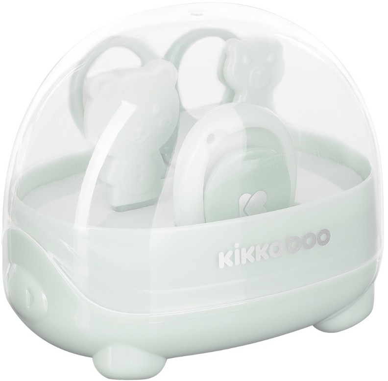 Setul pentru îngrijirea bebelușului Kikka Boo Bear Mint este un kit practic și sigur, destinat igienei zilnice a copilului încă de la naștere. Setul include: pensetă (knipser), pensetă nazală pentru copii cu cap rotund, foarfece de unghii și pilă cu suprafețe dure și fine pentru șlefuire. Toate accesoriile sunt realizate din materiale sigure, potrivite pentru pielea sensibilă a bebelușului. Designul atractiv și dimensiunea compactă îl fac ușor de utilizat atât acasă, cât și în deplasare. Este o alegere practică pentru părinți și o idee bună de cadou pentru nou-născuți.